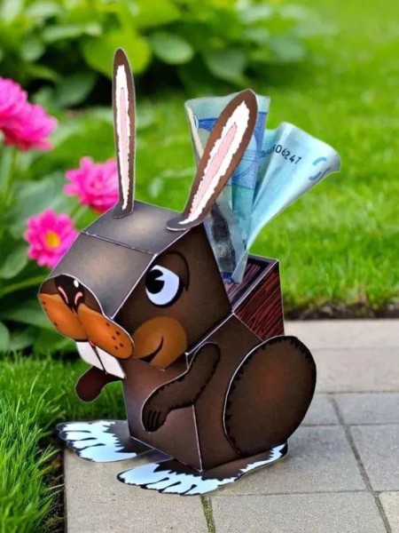 Bastelbogen für einen Geld-Osterhasen, bestehend aus: